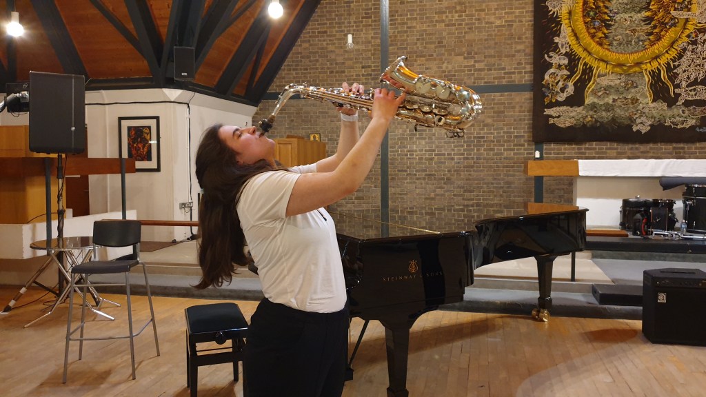 As music has such a massive history and it’s amazing to think how music has changed over the years and as it is forever-changing there is no limit to what you can learn and create. To further my knowledge I have taken part in workshops run by ‘Jazzsmart’ and ‘Tomorrow’s Warriors’ where I had the pleasure of playing in the Queen Elizabeth Hall, Southbank Centre, London. Having graduated from university with first class honours in BMus Jazz Performance (Hons) between the years 2019-2023, I was given the chance to explore my craft; composing original tunes, developing my technique and skill as well as forming and leading my own bands. In addition, I have had the experience of playing first and second alto in wind bands and big bands. ‘Spaceflight’, who have played at Chichester Jazz Club, and won ‘Ensemble of the Year’ at the Conservatoire where I studied, was a band I founded and led between 2020-2022. ‘SaxandUke‘ is a band Matthew Quilliam and I founded in 2022 who have played in a variety of venues, to name a few: Basingstoke Canal on the John Pinkerton II, the Summer Sessions at Chichester Festival Theatre, Hilliers Garden Centre (Winchester), The Beach Cafe (Littlehampton), St Faith’s Church (Havant), St Cross Church (Winchester) and many more…